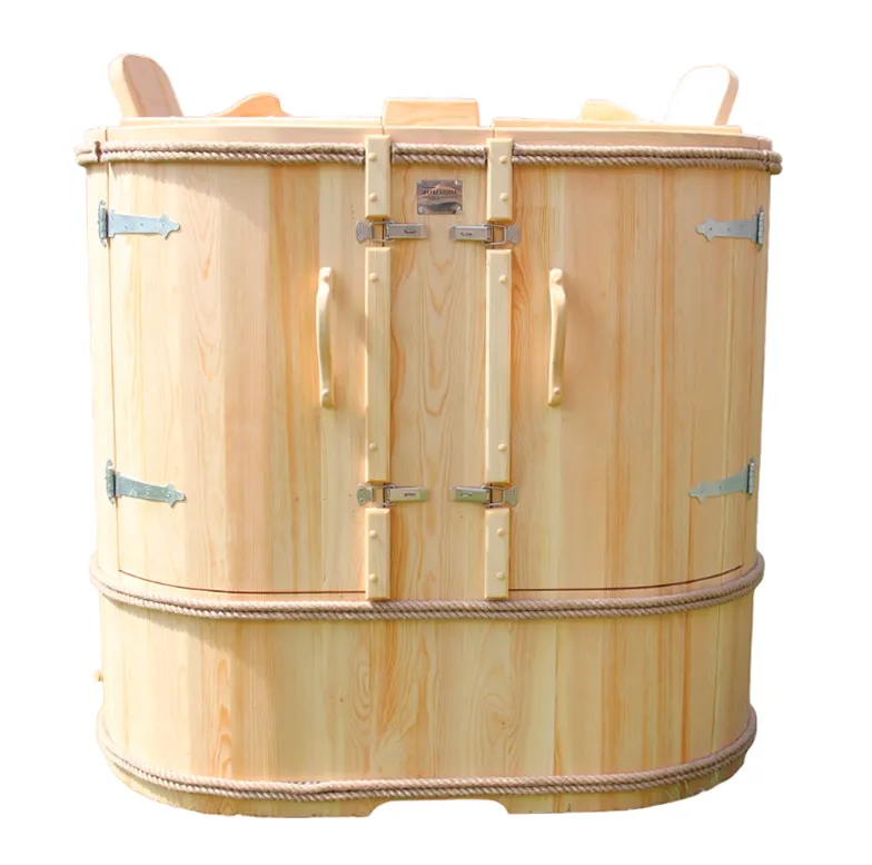 Это круглая фитобочка из кедра увеличенных размеров с толщиной стенок 45 мм. Подходит для людей высокого роста и крупной комплекции. Фитобочка оборудована откидными створками, дверцей и отверстием для головы. Во время парения человек сидит внутри кедровой бочки, а голова находится снаружи. Благодаря этому исключается возможность перегрева. Подлокотники из кедра, встроенные ручки на створках и двери делают эксплуатацию более удобной.