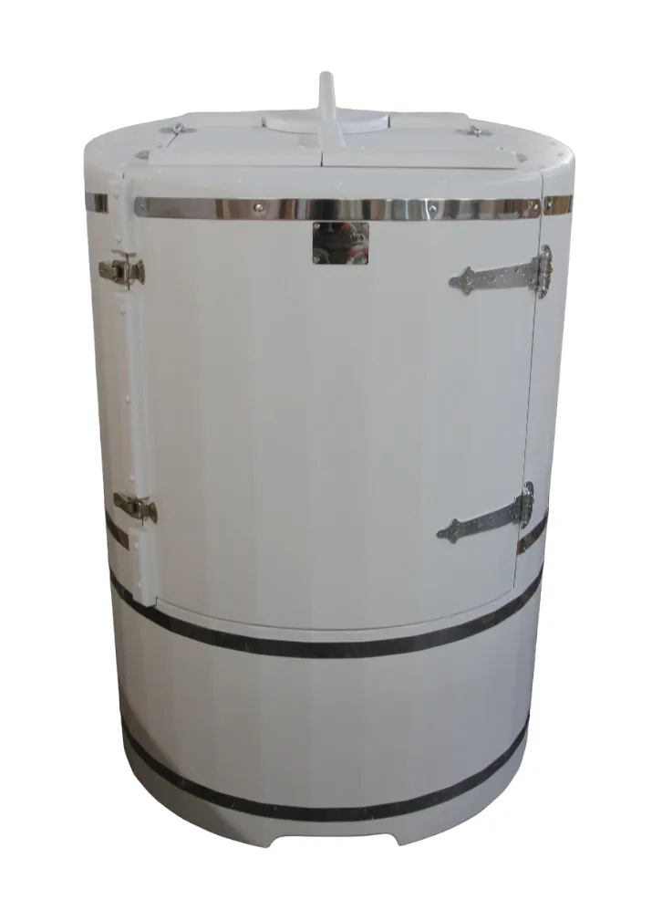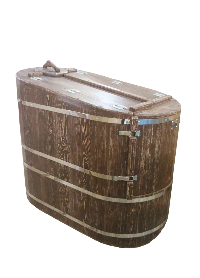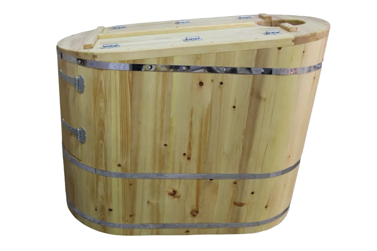 Квадратная двухрежимная фитобочка из кедра может быть использована как инфракрасная сауна и парная. Карбоновые излучатели отвечают за сухое парение, они находятся на внутренней стороне дверцы и задней стенке фитобочки. Влажное парение происходит за счет поступления горячего пара в фитобочку через паропровод. Толщина стенок составляет 40-45 мм, что позволяет увеличить срок службы изделия. Откидная дверь бочки во время открывания фиксируется внешней подставкой - опорой, которая в закрытом состоянии складывается и не занимает лишнее пространство. Во время парения человек сидит внутри кедровой бочки, а голова находится снаружи. Благодаря этому исключается возможность перегрева. Встроенная ручка на двери делают эксплуатацию фитобочки более удобной.