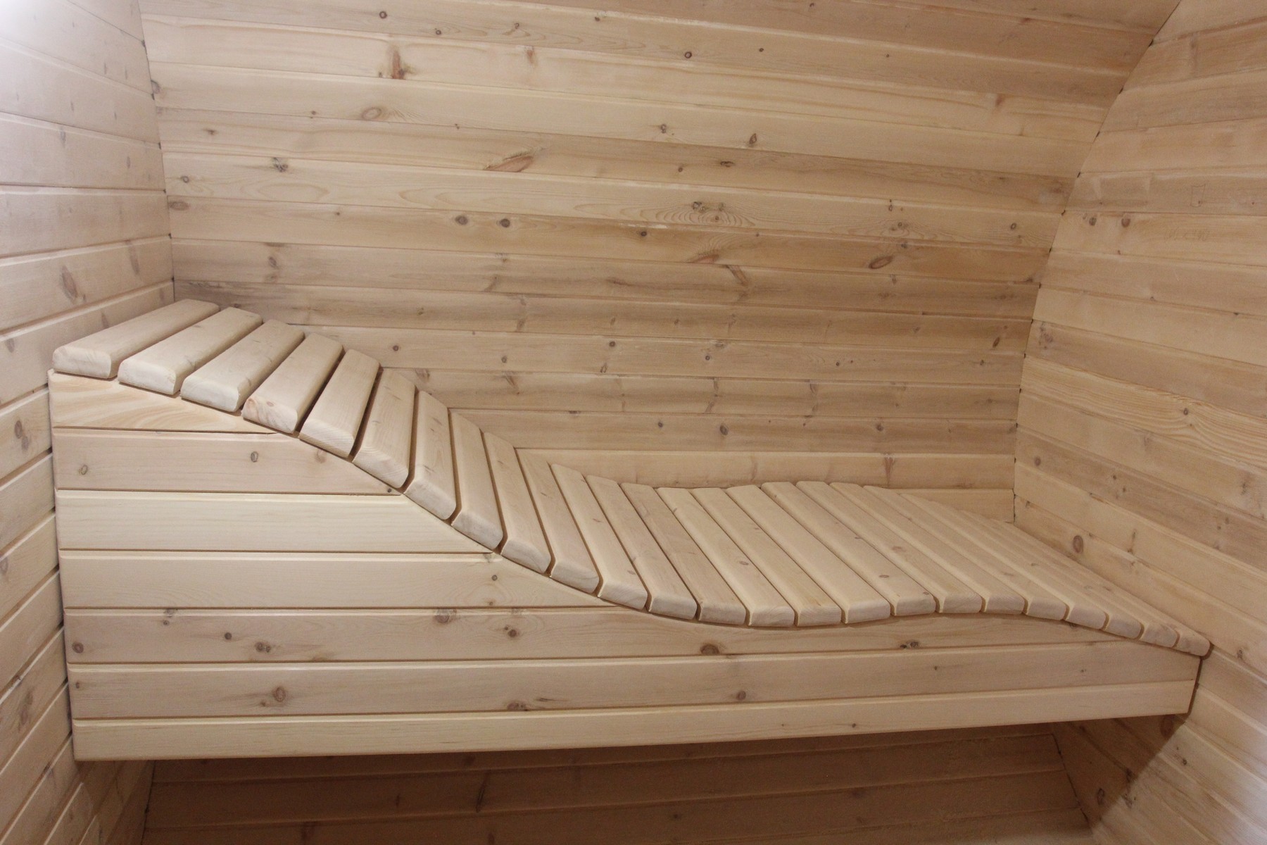 Это изделие круглой вытянутой формы с тремя отделениями: раздевалкой, моечной и парной. Во всех трех отделениях с обеих сторон установлены лавочки из кедра. Печь находится в парилке около дальней стены. Для удобства пользования в бане висят полочки из кедра и вешалка в раздевалке. Время растопки такой бани не превышает 30 минут. По вашему желанию баню-бочку можно дополнить печью с внешней загрузкой, благодаря которой весь мусор после топки останется на улице. Круглая баня-бочка не требует полноценный фундамент, поэтому при необходимости ее можно перенести в другое место.
