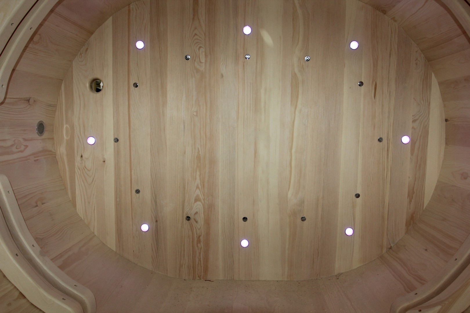 На дне купели устанавливают металлические форсунки, в которые насос под давлением нагнетает воздух. В результате получается эффект природного гейзера. Система аэромассажа 700 Вт на 10 форсунок c хромотеропией LED RGB (управление комплектом - электронный пульт).
