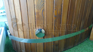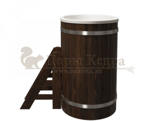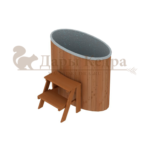 Это купель с внутренней овальной чашей, которая изготовлена из современного прочного и термоустойчивого материала (композита). Форма чаши обеспечивает комфортную посадку внутри изделия. Для удобного использования купель оснащена приставной лестницей. Обручи из нержавеющей стали декорируют купель с композитом и равномерно распределяют нагрузку во время процедур.