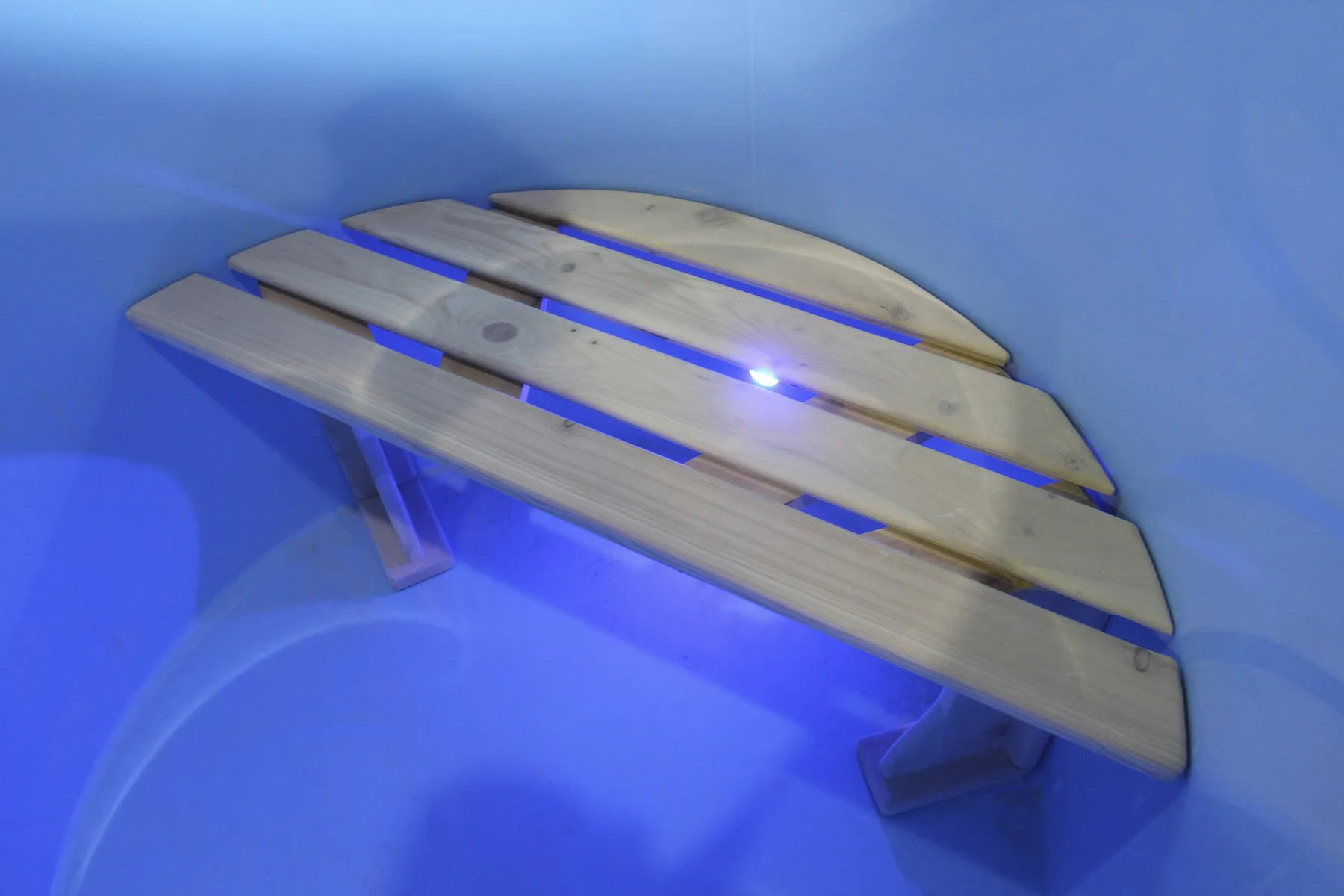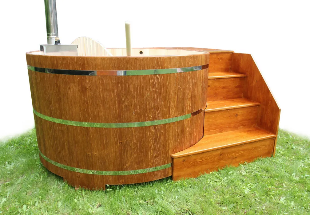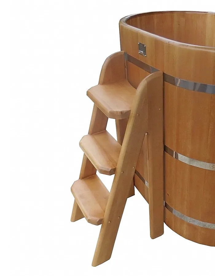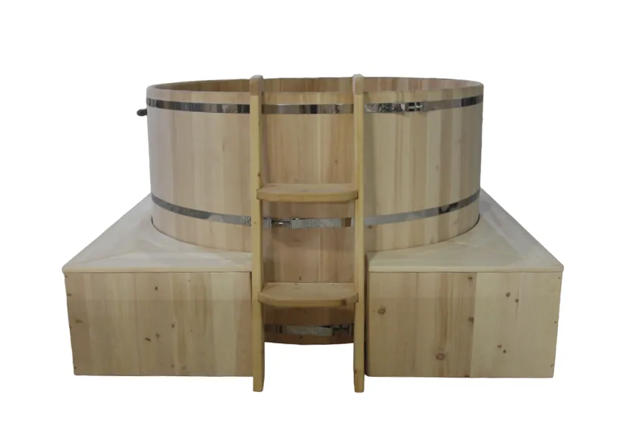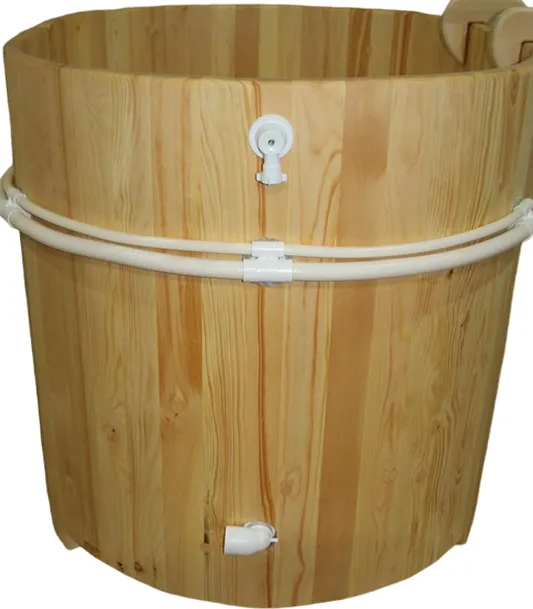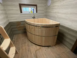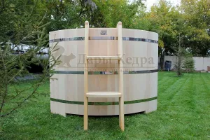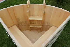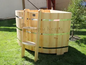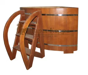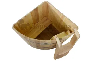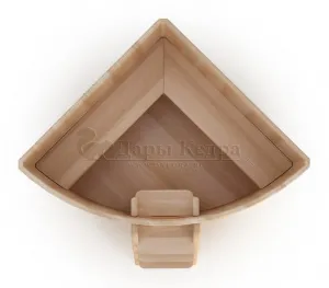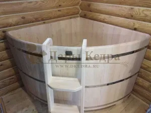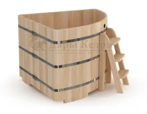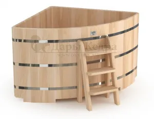 Это треугольная емкость для воды из кедра. Она предназначена для отдыха и охлаждения тела после банных процедур. Купель устанавливается в угол помещения, что идеально для не больших пространств. Так же подходит для уличного использования. Угловая купель оснащена лавочками, приставной и внутренней лестницей из кедра. За счет стяжных болтов обручи из нержавеющей стали плотно прилегают к кедровой купели. Это позволяет равномерно распределять нагрузку воды и сохранить форму изделия в период эксплуатации. При правильном уходе угловая купель для бани не рассыхается и не подвергается гниению.